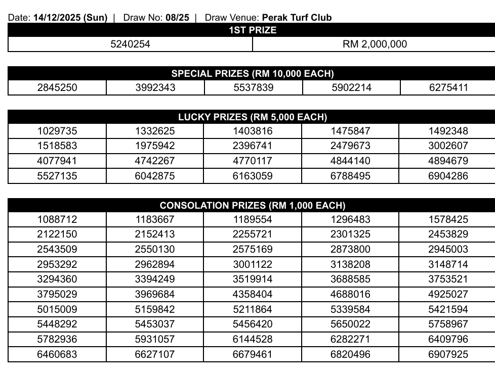 | Malaysia Big Sweep Jackpot Results 2025 | Click Here |