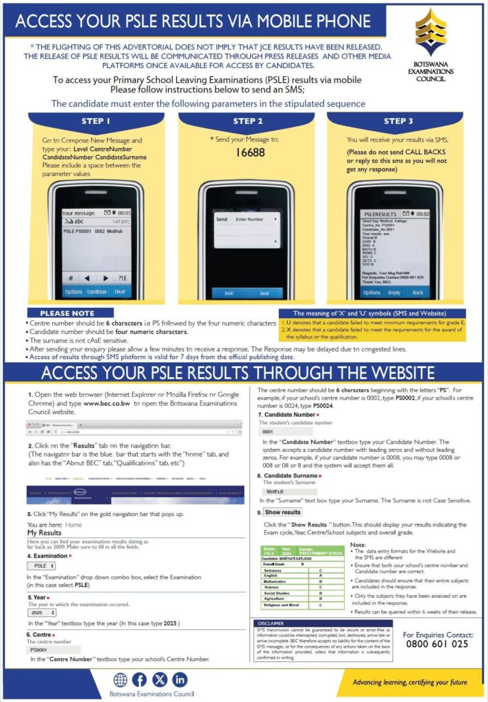 | Botswana PSLE Results 2025 Date | 3rd Week Of December 2025 |