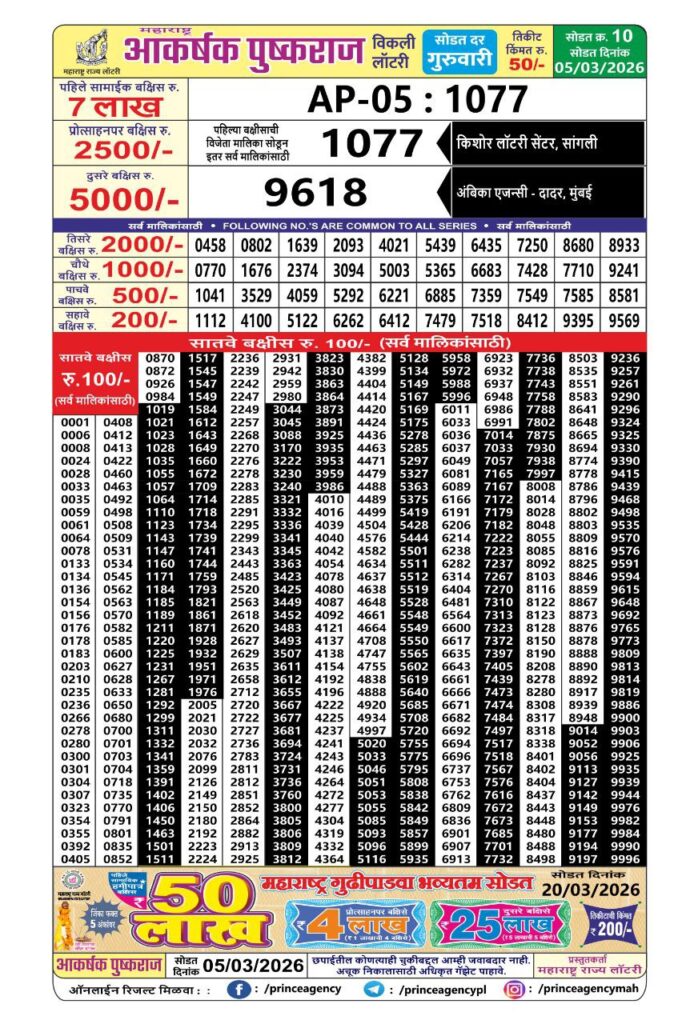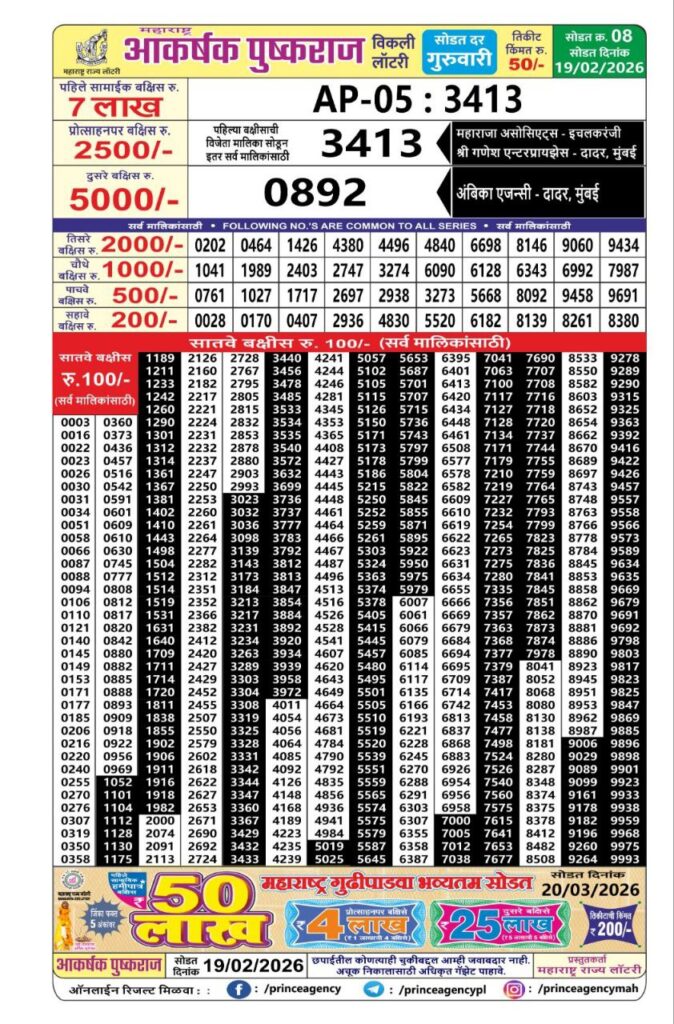 Maharashtra Akarshak Pushkraj Lottery Draw 2025 Cash Prizes Detail