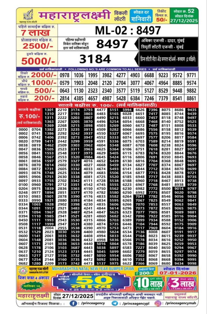 Download PDF List- Maharashtralaxmi Lottery Weekly Result 2026: PDF List