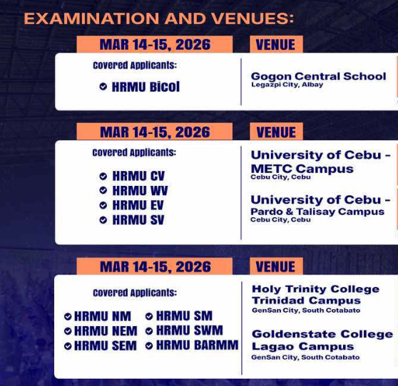 | March 21-22, 2026 (HRMU NCR-CL) (HRMU STL) | Pedro Guevera Elementary schools |