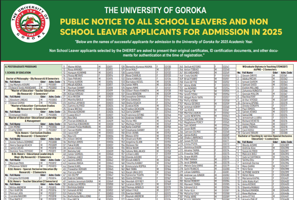 University Of Goroka Acceptance List For 2025: Click Here