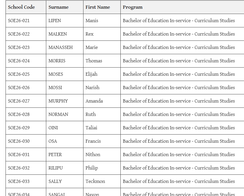| University Of Goroka Continuing Students List For 2026 | Click Here |