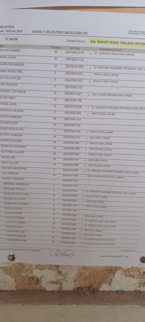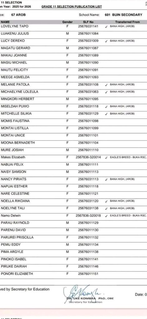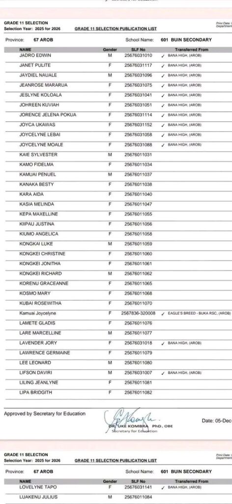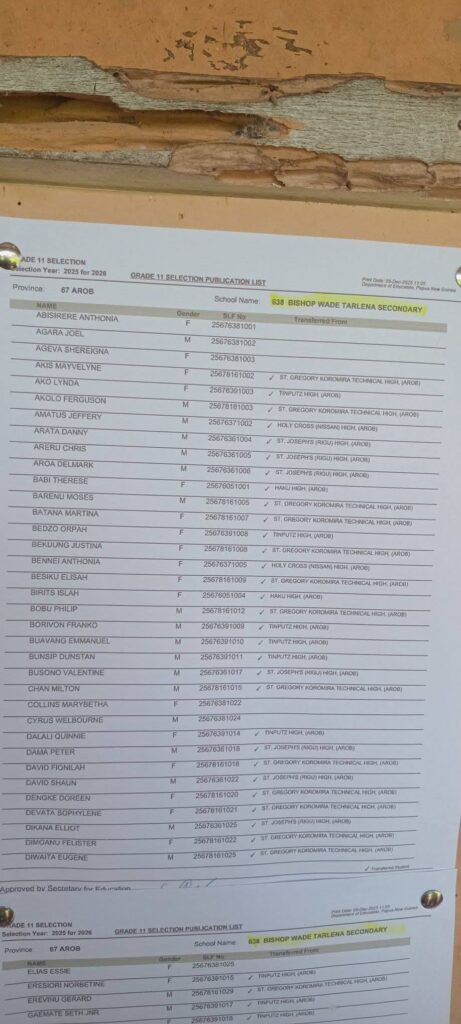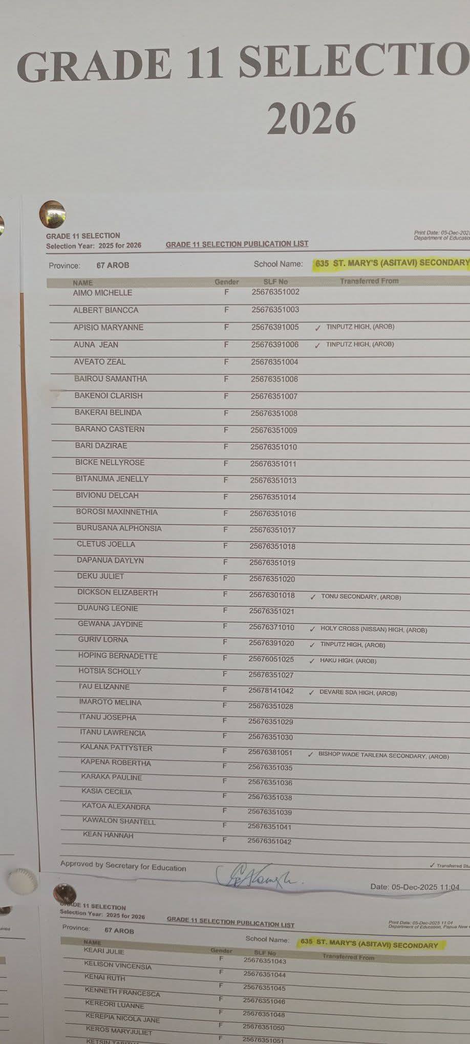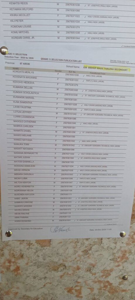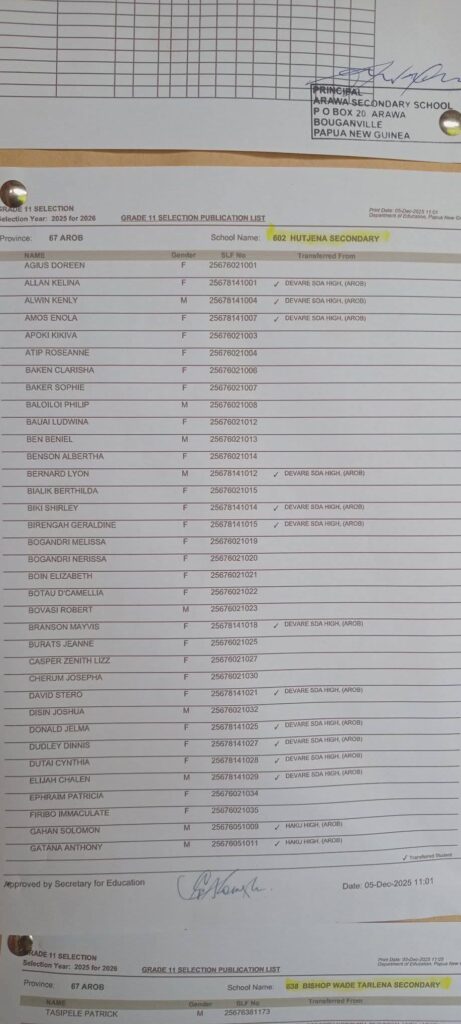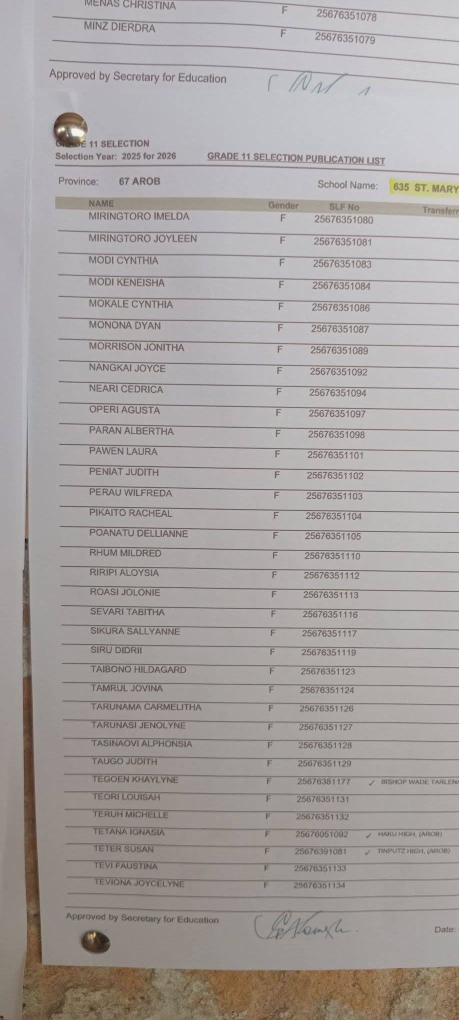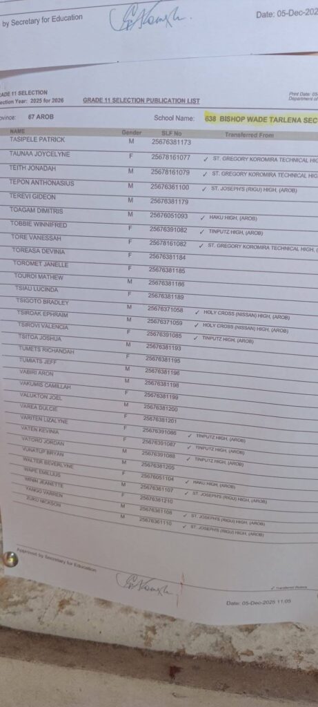 Grade 11 Selection list for 2025 to 2026 PDF Download: Highlands region, Momase region, Southern Region & Province-wise. Papua New Guinea National Selections for Grade 11 for the 2026 academic year is ongoing in Port Moresby. The selection lists will be provided to provinces to qualify the list based on both merit (GPA) and quota (Availability of Space in Schools). The Department of Education, Papua New Guinea, prepares the grade 11 Selections every year. The process is coordinated by the national Department of Education and determines which students progress into upper secondary based on their academic performance and school choices. Hence, Grade 11 selections in Papua New Guinea are carried out each year to place Grade 10 students into secondary schools, national high schools, and schools of excellence.