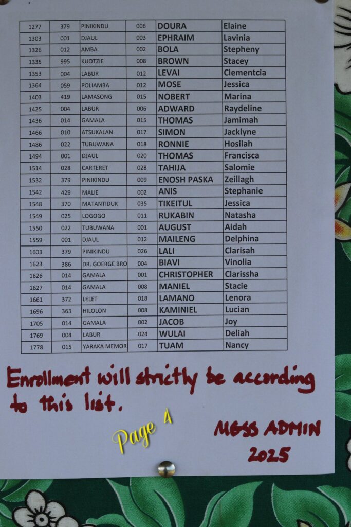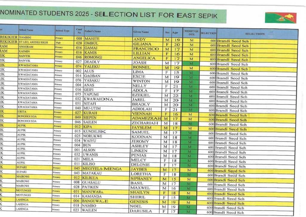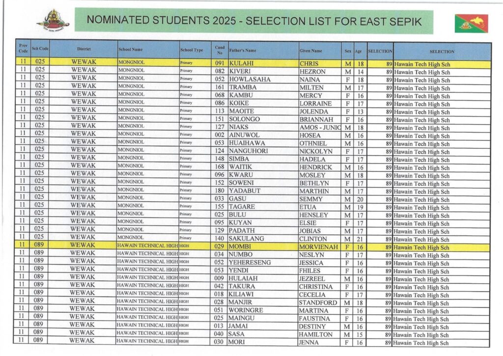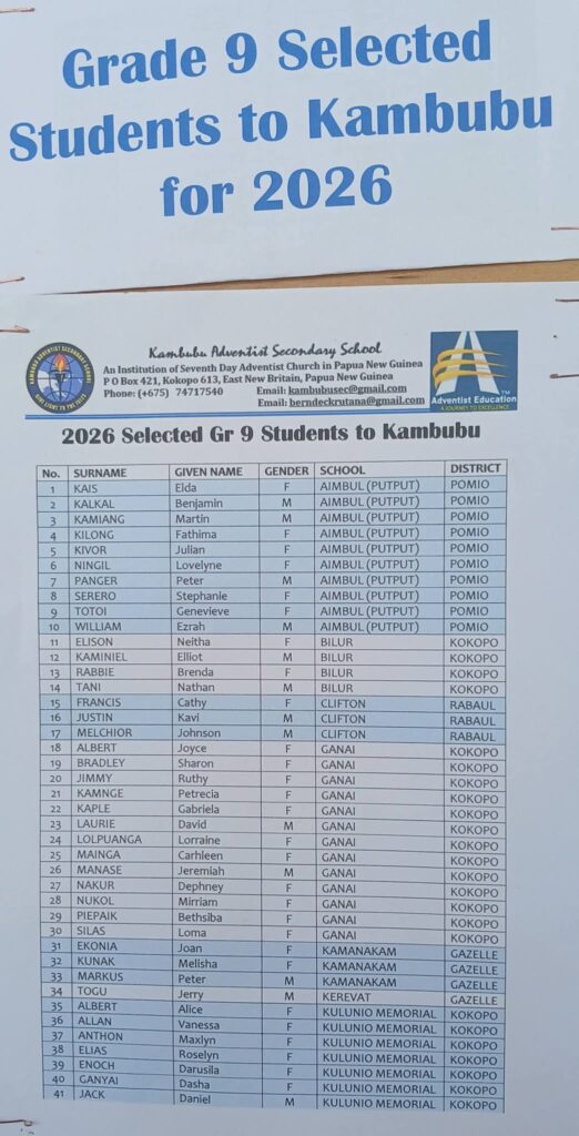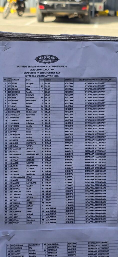 Papua New Guinea 2025 Grade 9 Selection list for 2026 Pdf Download
