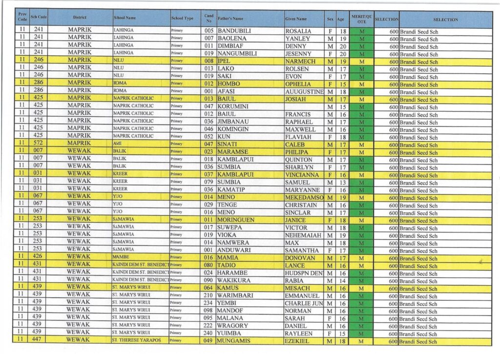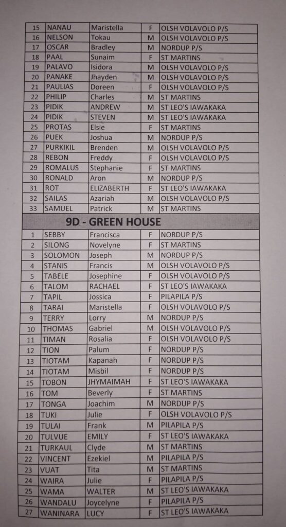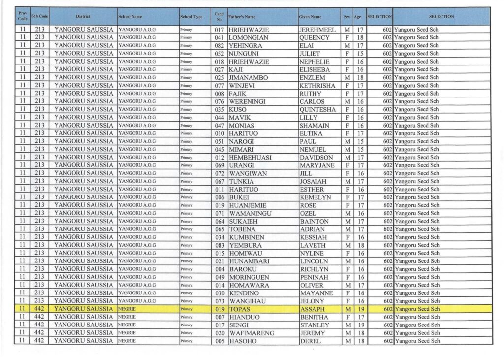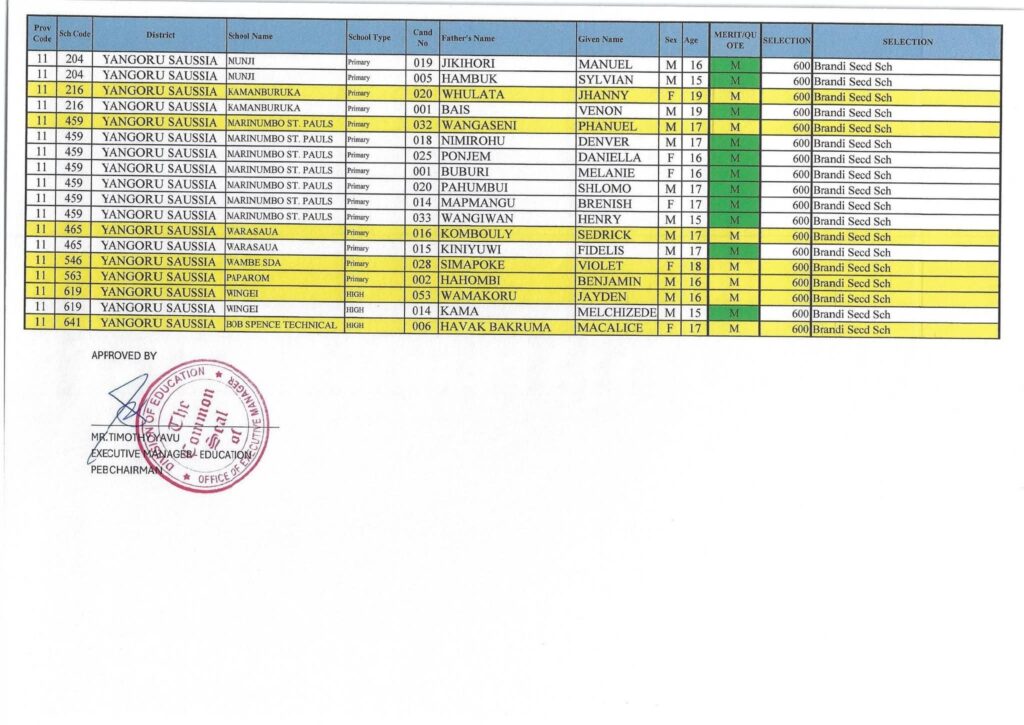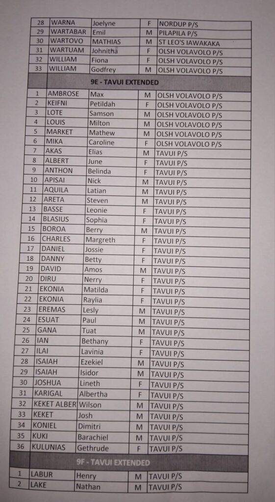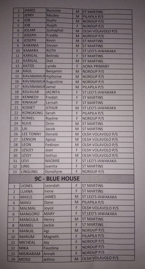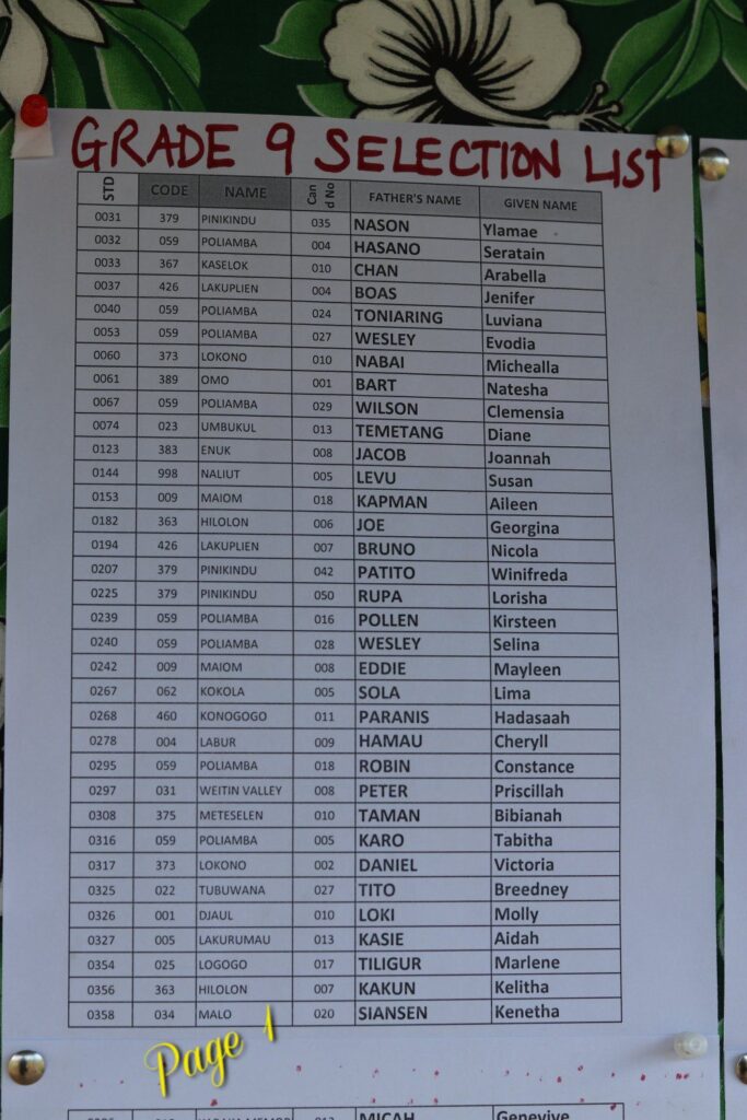 Please send also grade 9 selection lists for St Joseph’s Rigu high school in Bougainvillea