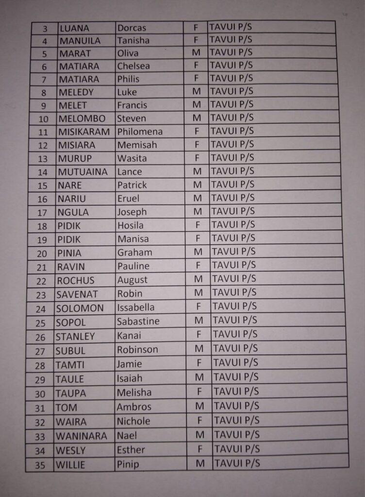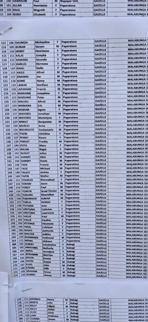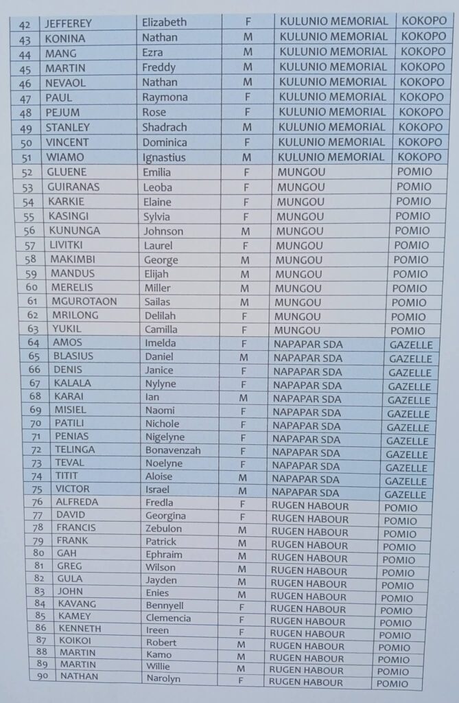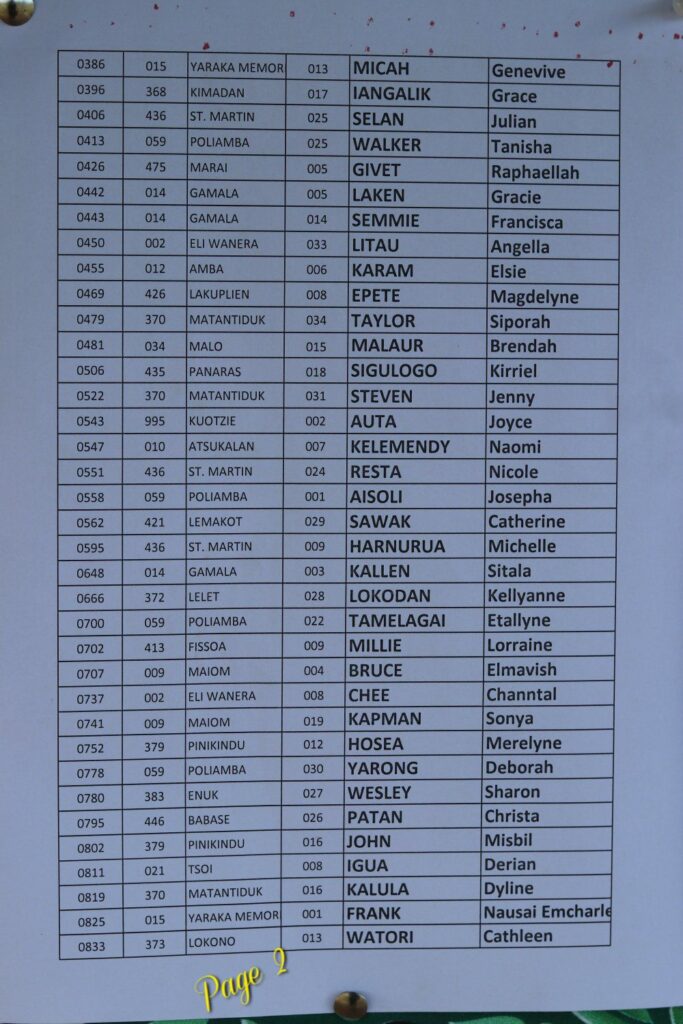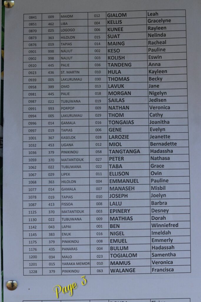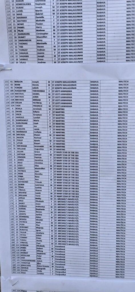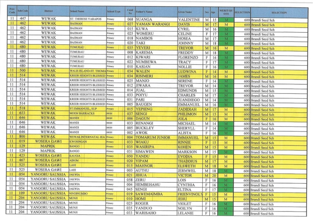 Please send also grade 9 selection lists for St Joseph’s Rigu high school in Bougainvillea