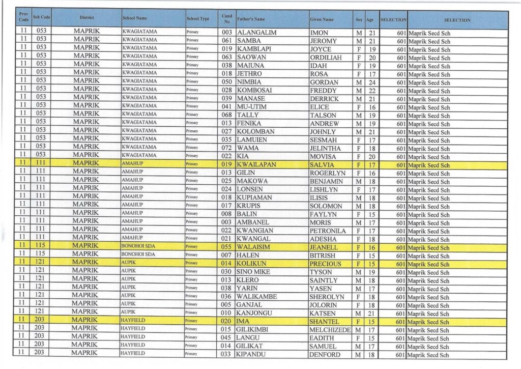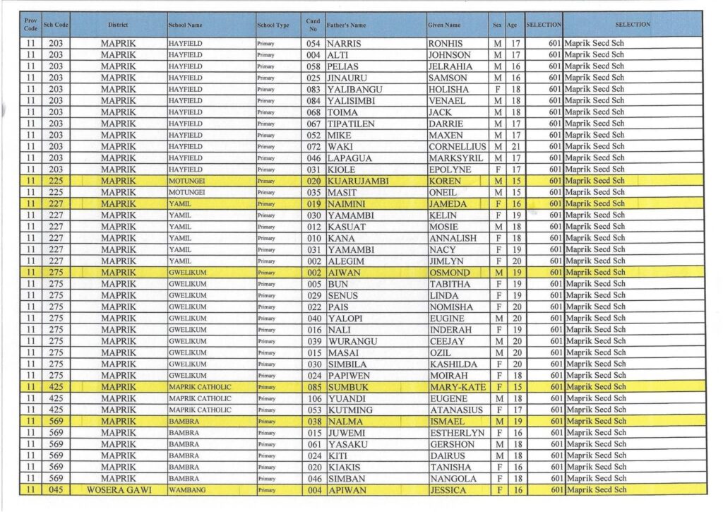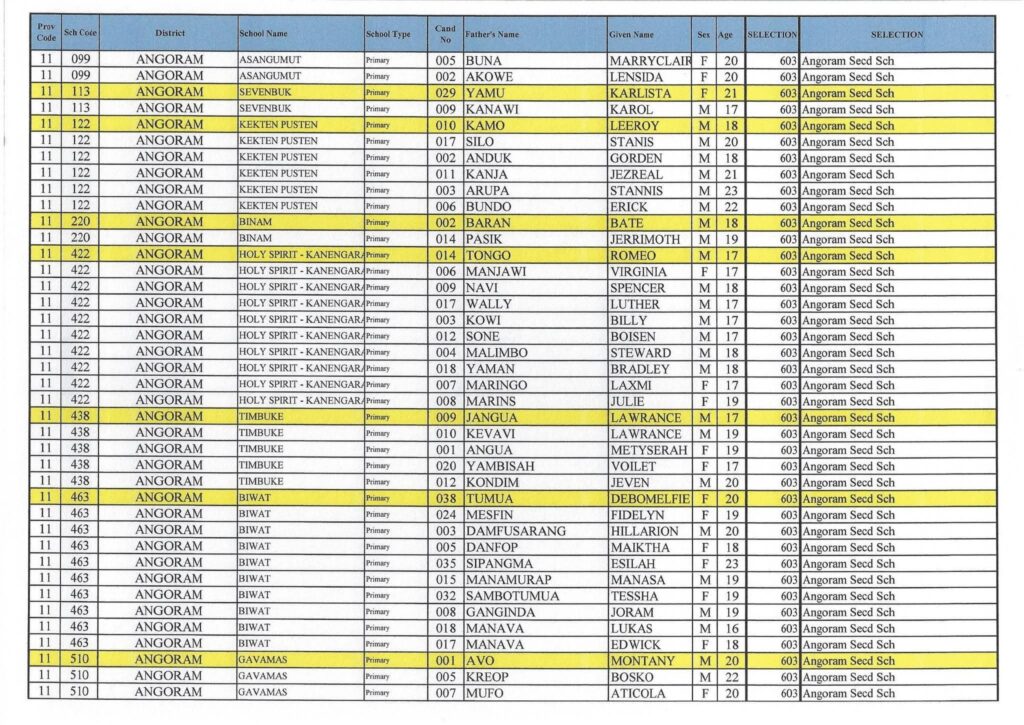 Hello, May I have the grade 9 selection list for 2026 inEastern Highlands Province