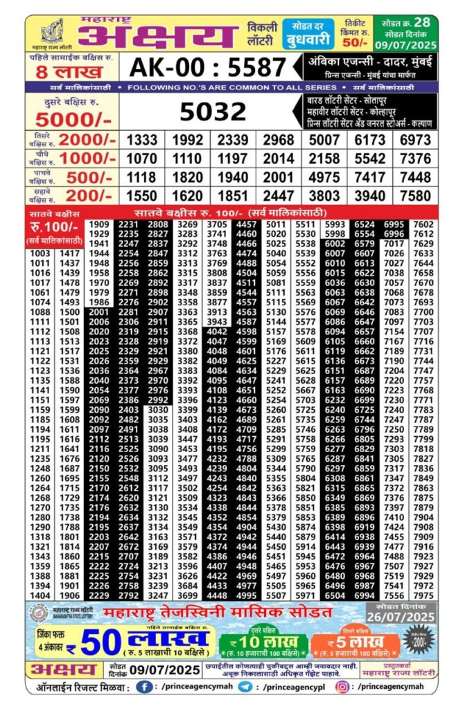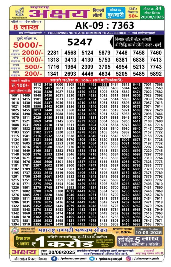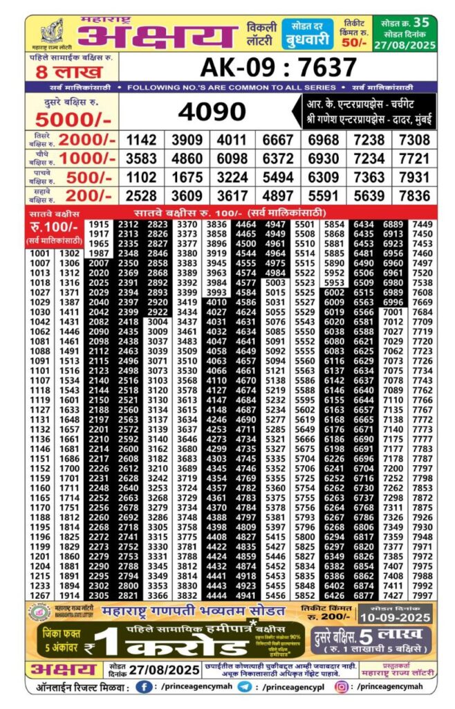 Maharashtra Akshay Weekly Lottery Results 2025 Lucky Prizewinner