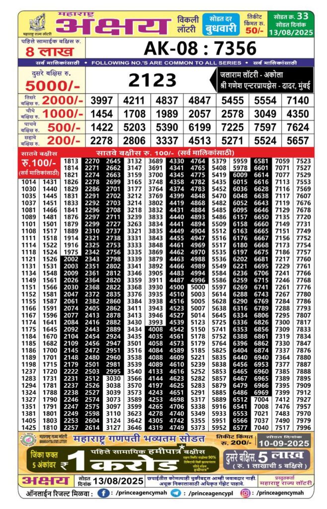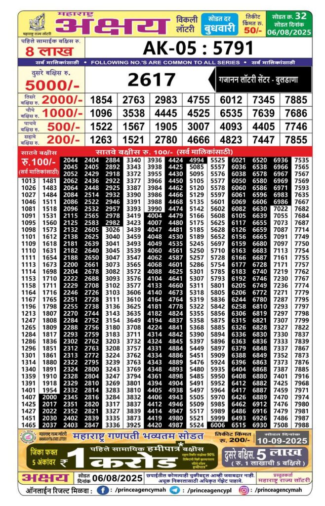 Maharashtra Akshay Weekly Lottery Results 2025: PDF List