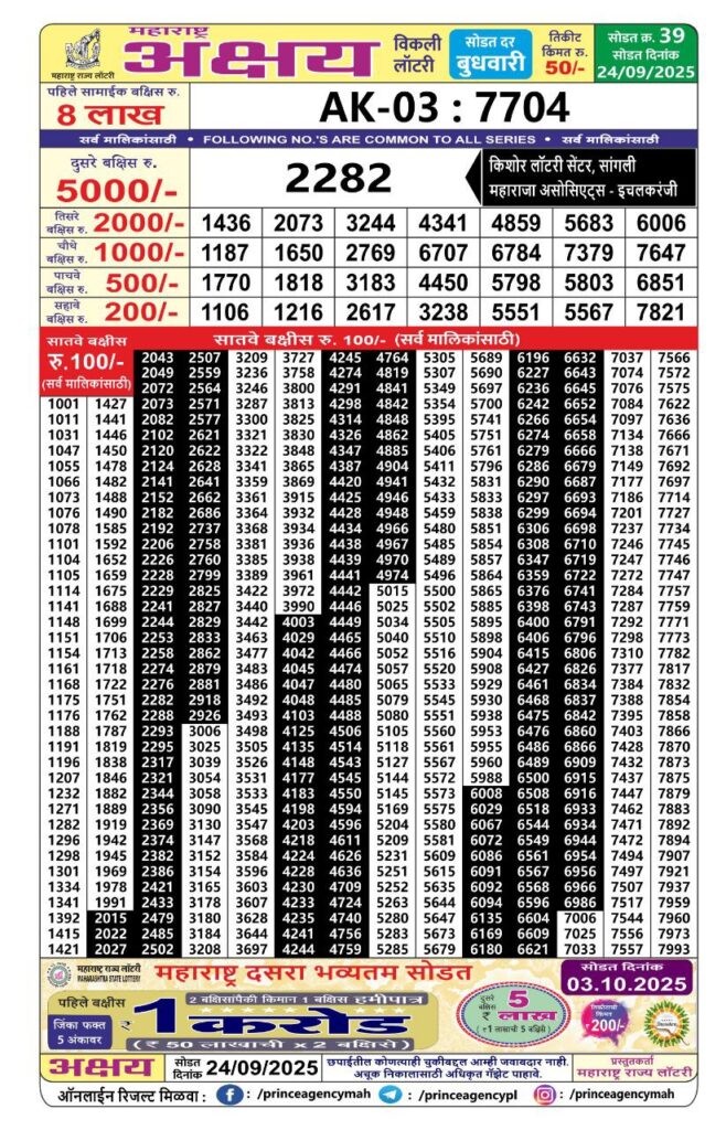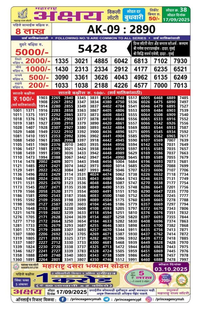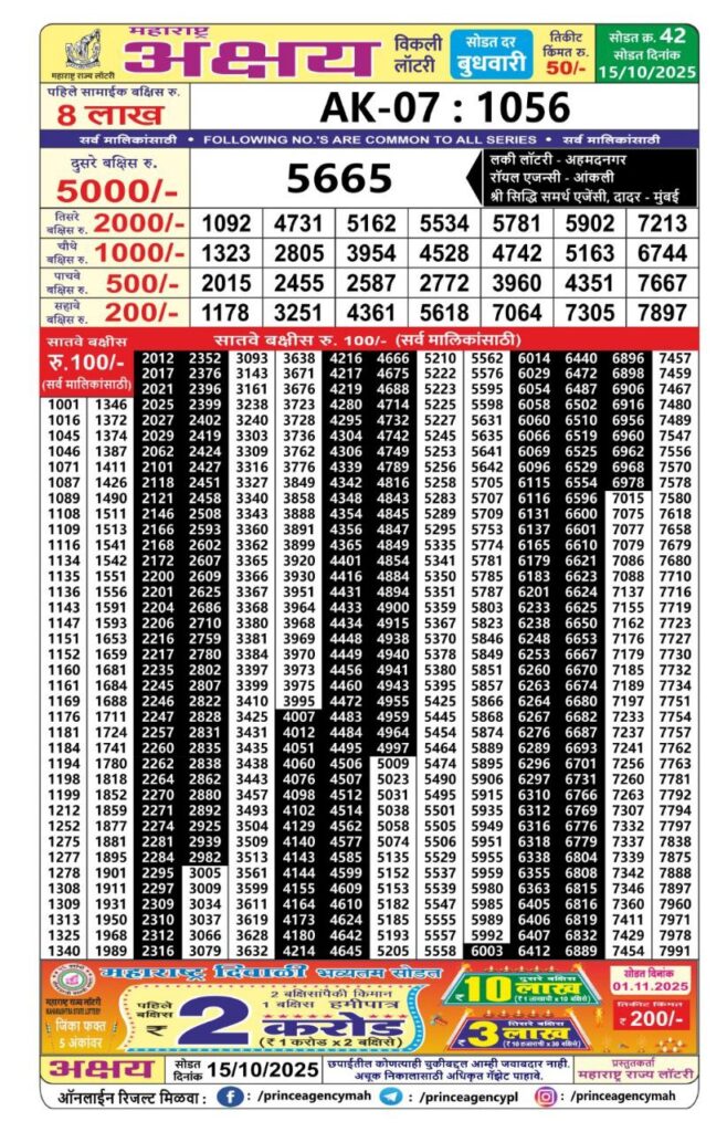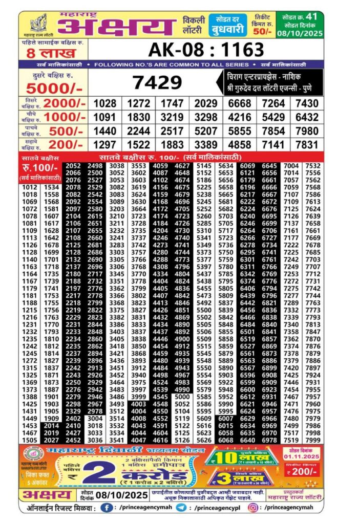Maharashtra Akshay Weekly Lottery Draw Results 2025 – Summary