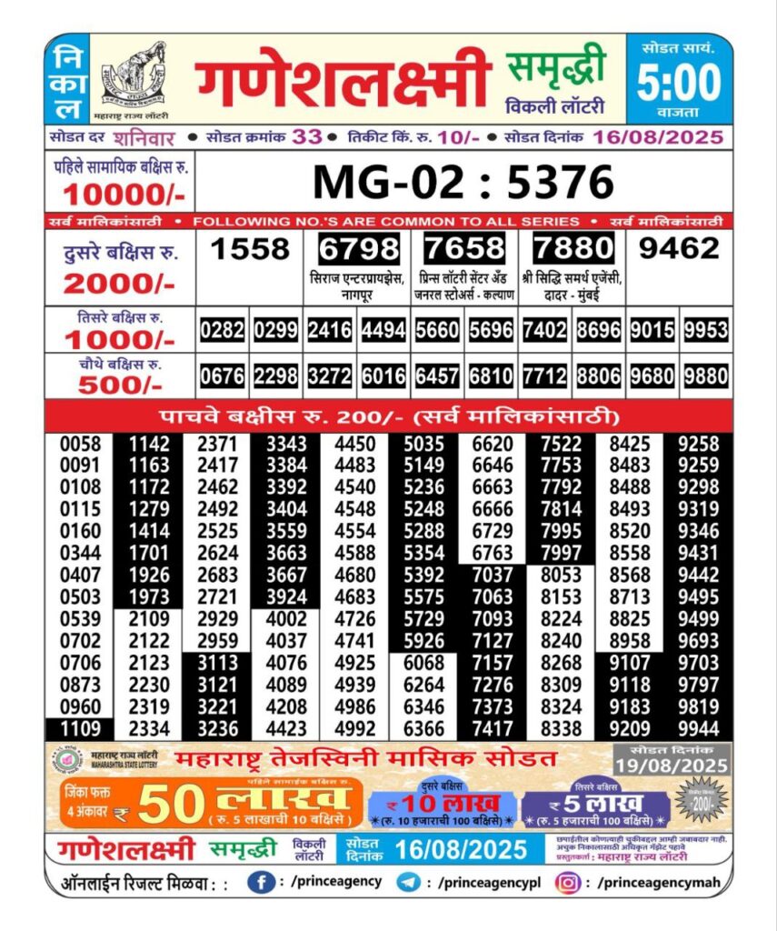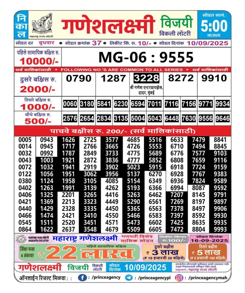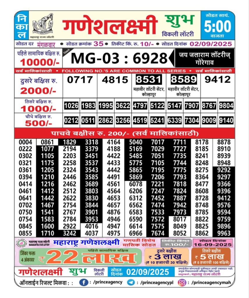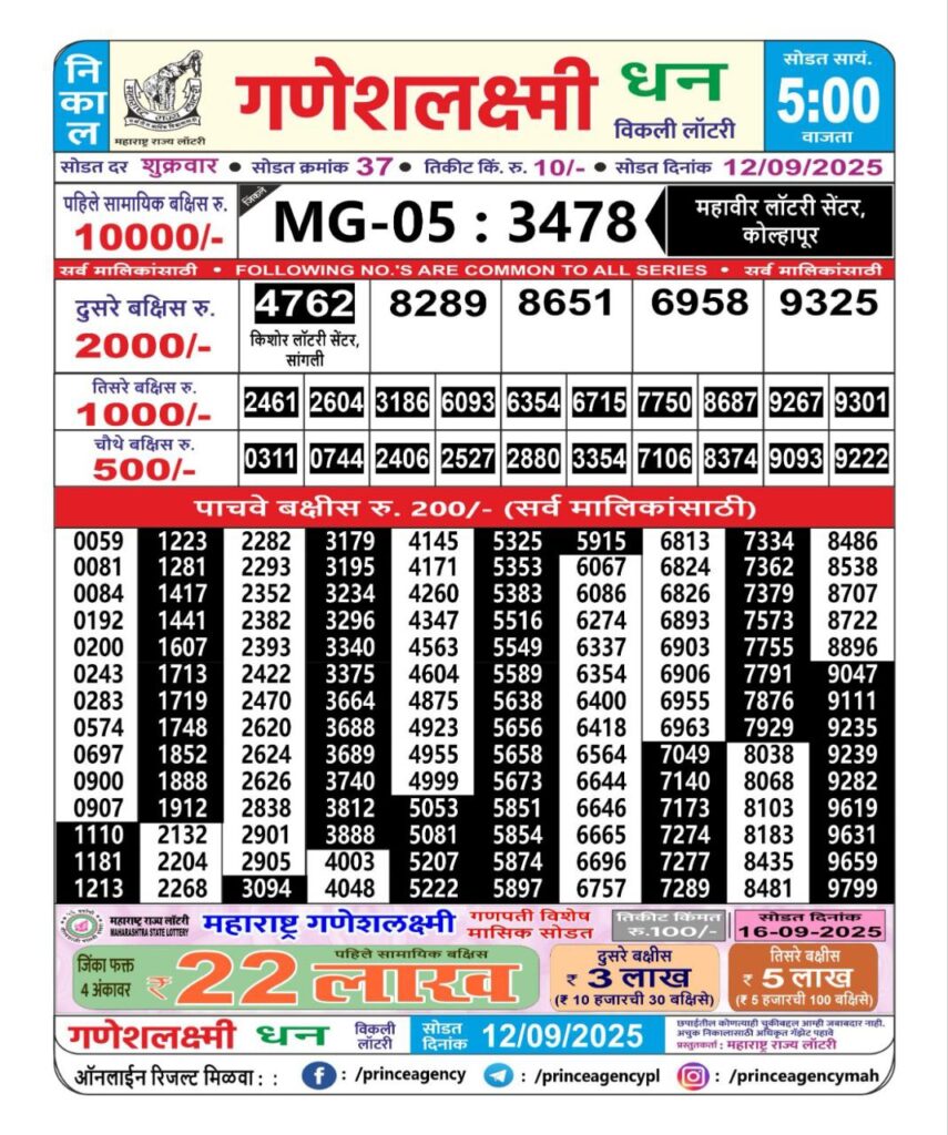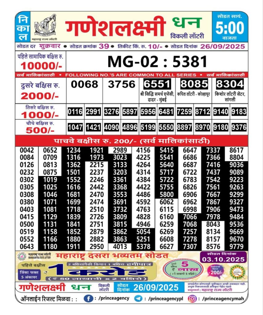 Maharashtra State Lottery Ganesh Laxmi Results 2025 Full Details