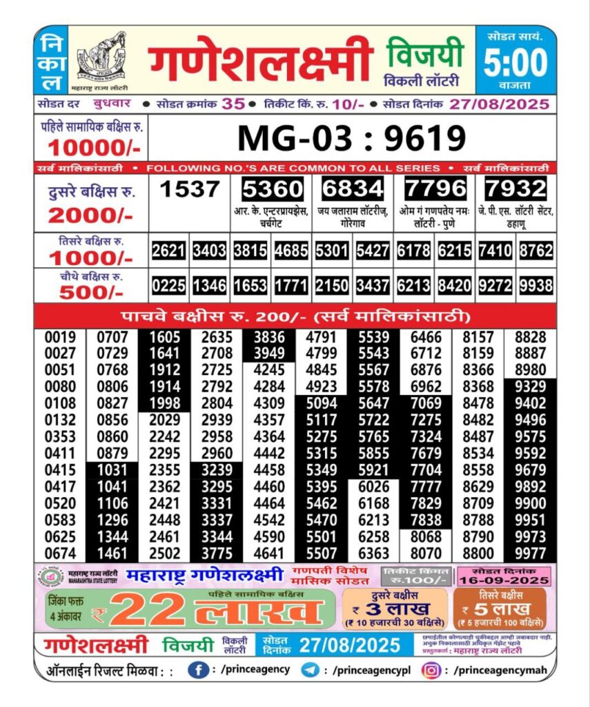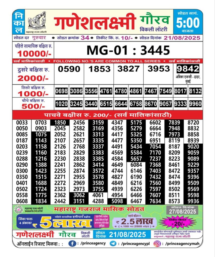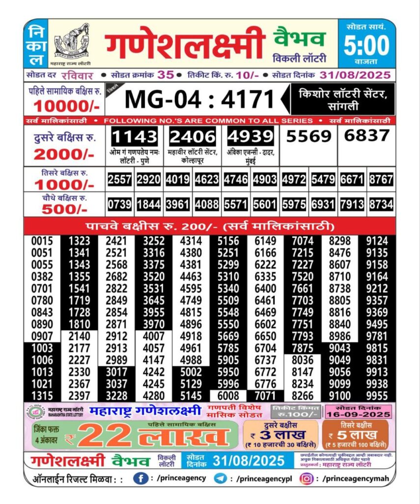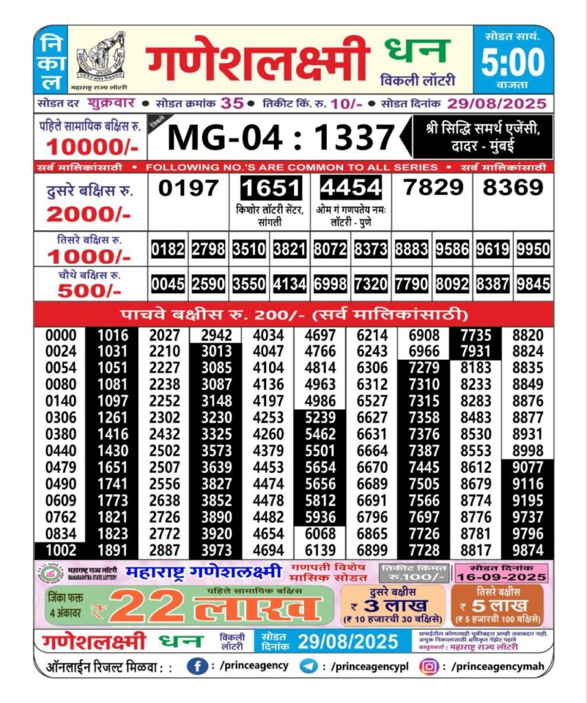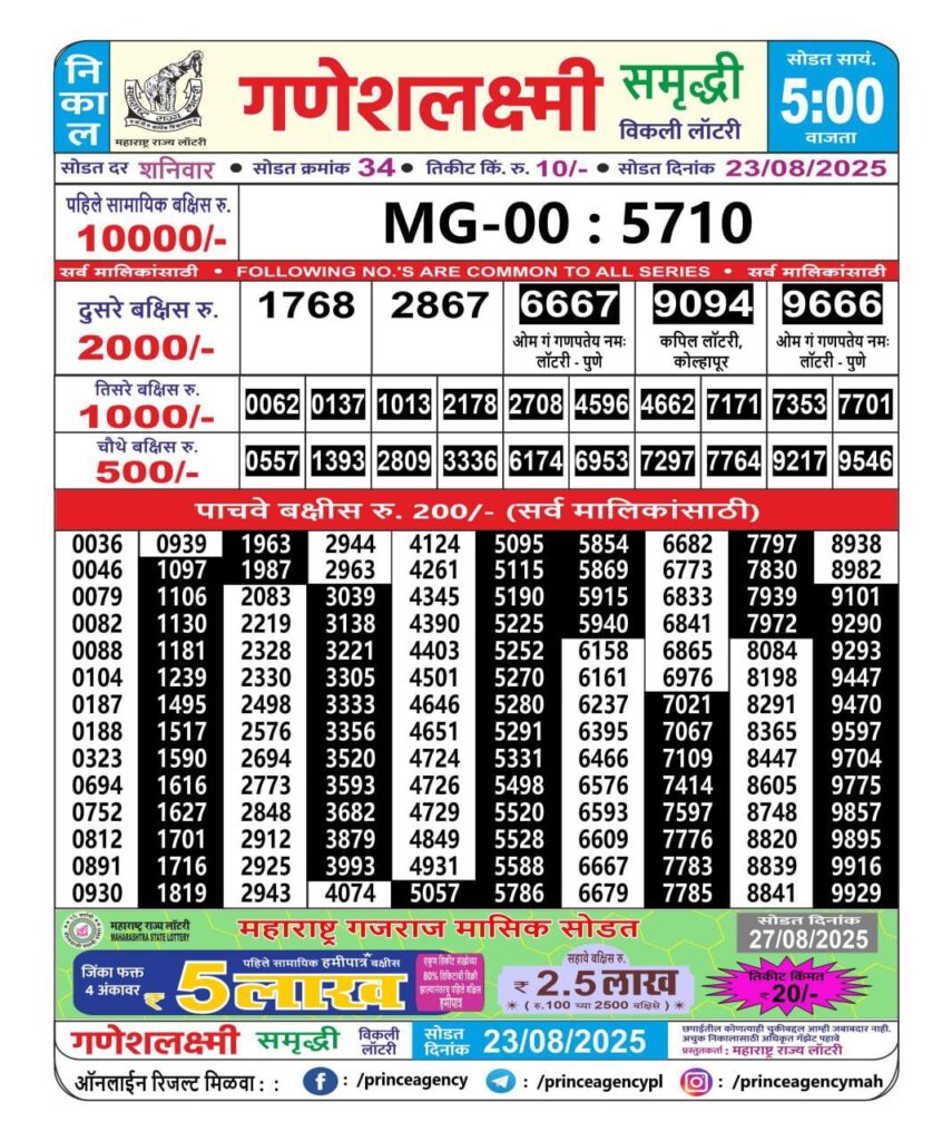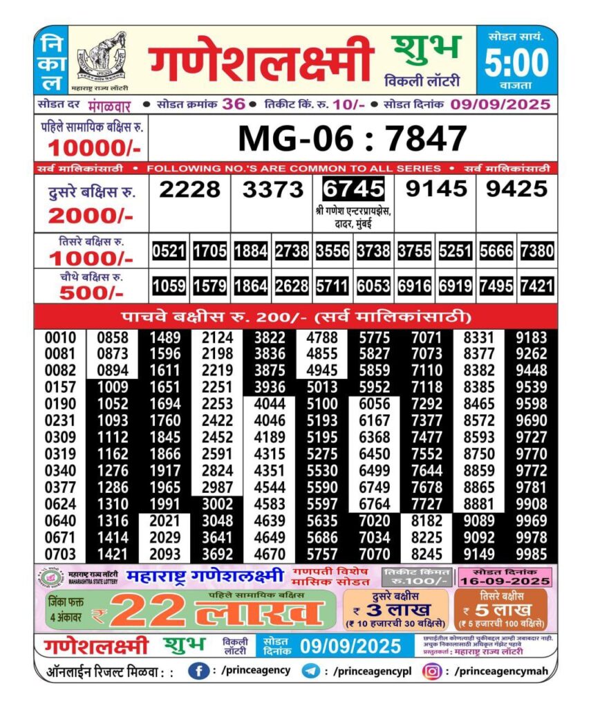 Maharashtra State Lottery Ganesh Laxmi Results 2025 Full Details