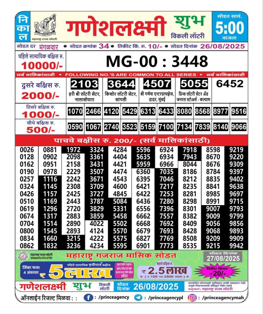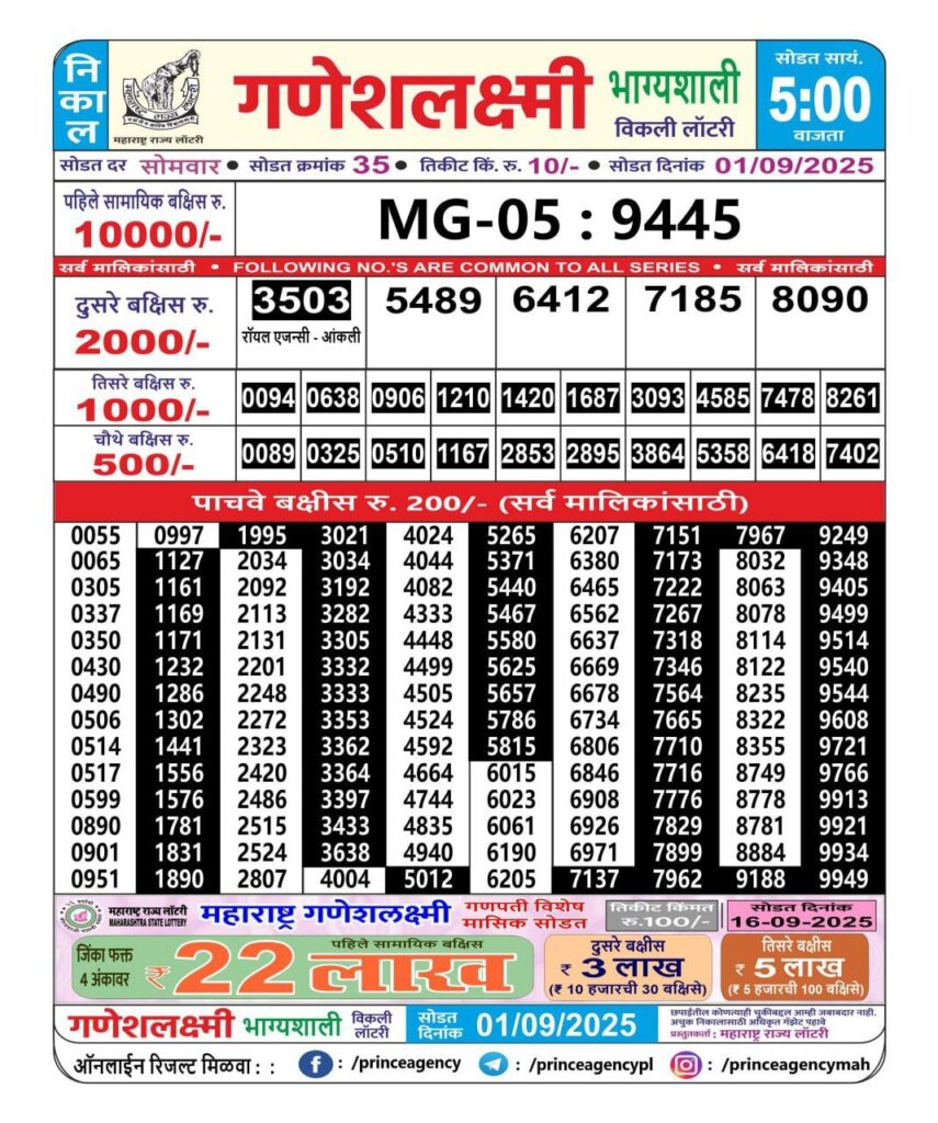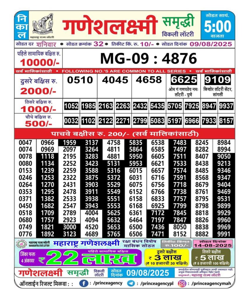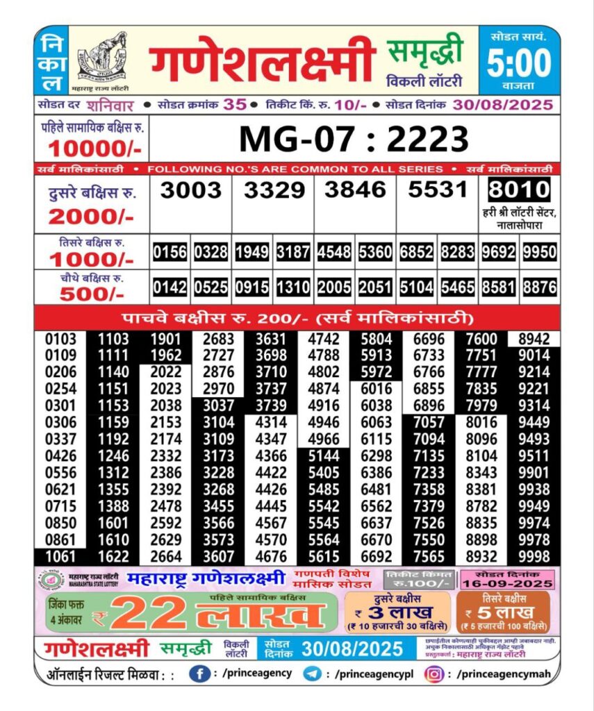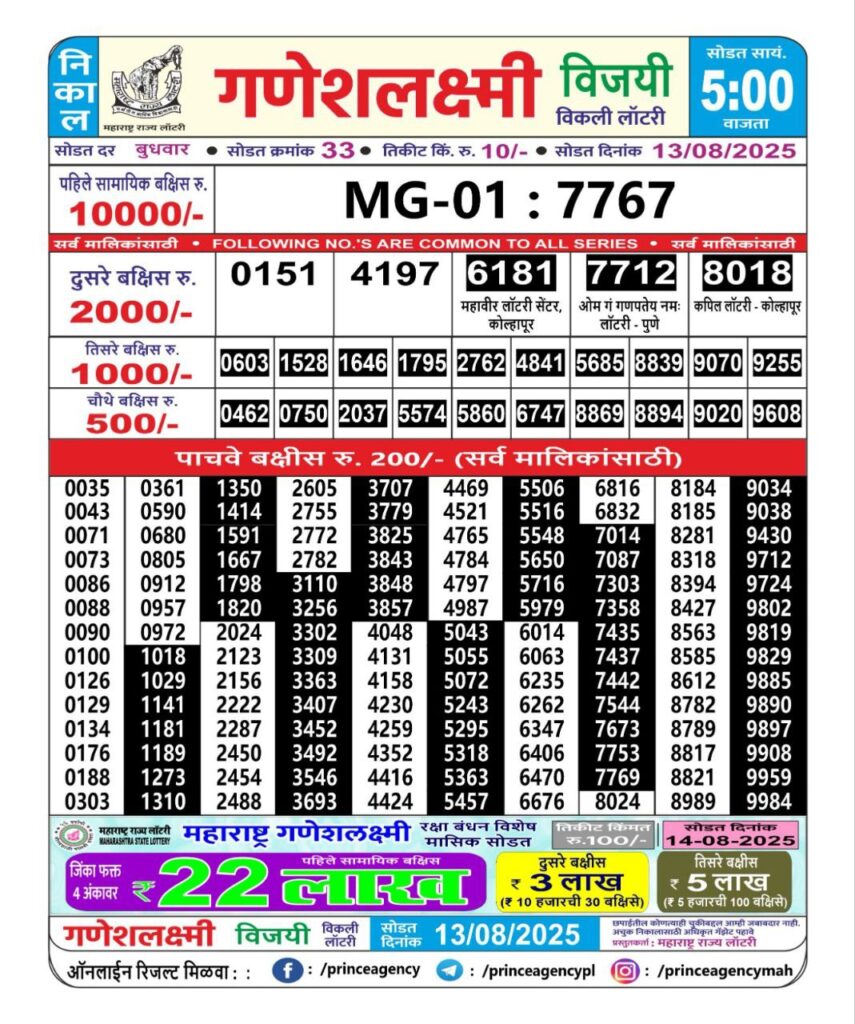 Maharashtra State Lottery Ganesh Laxmi Results 2025 Full Details