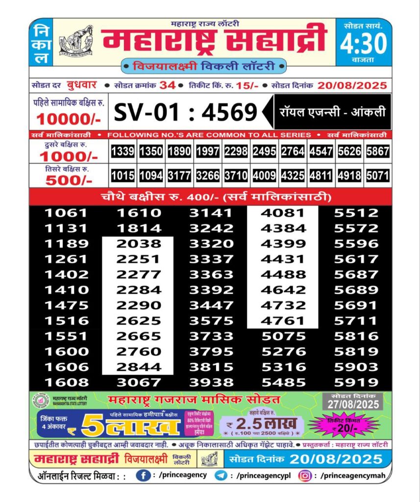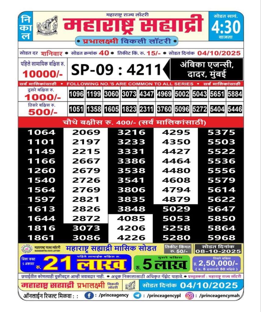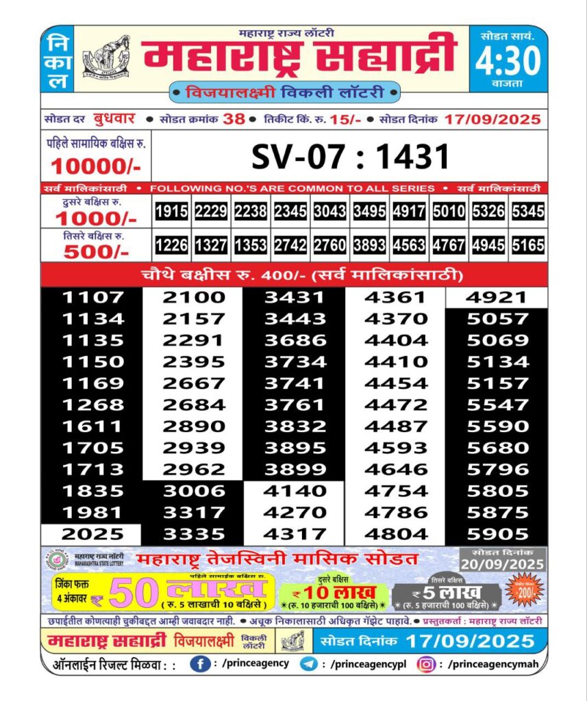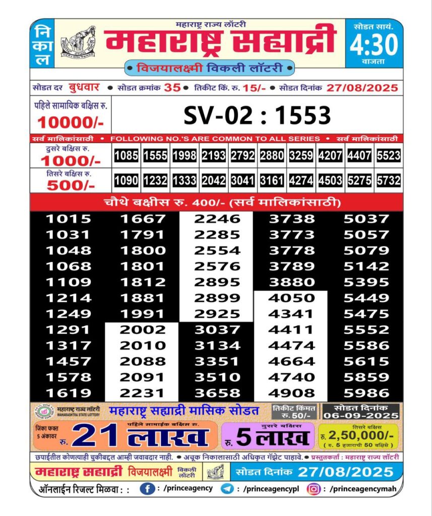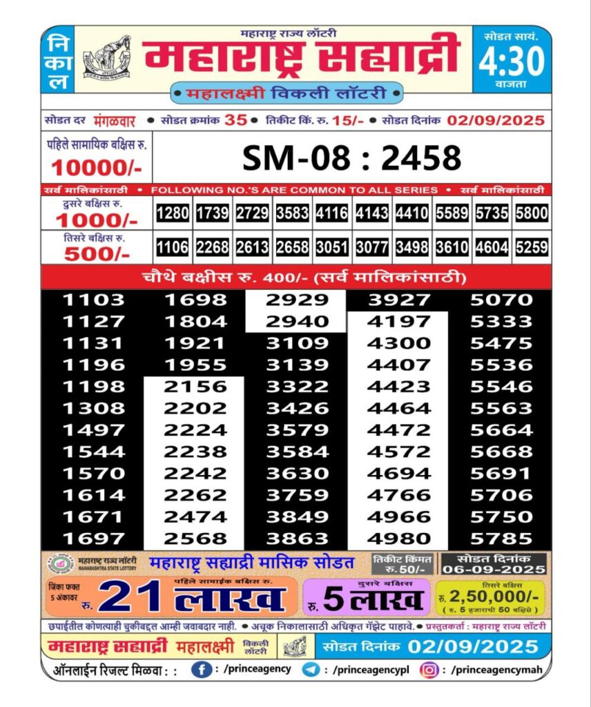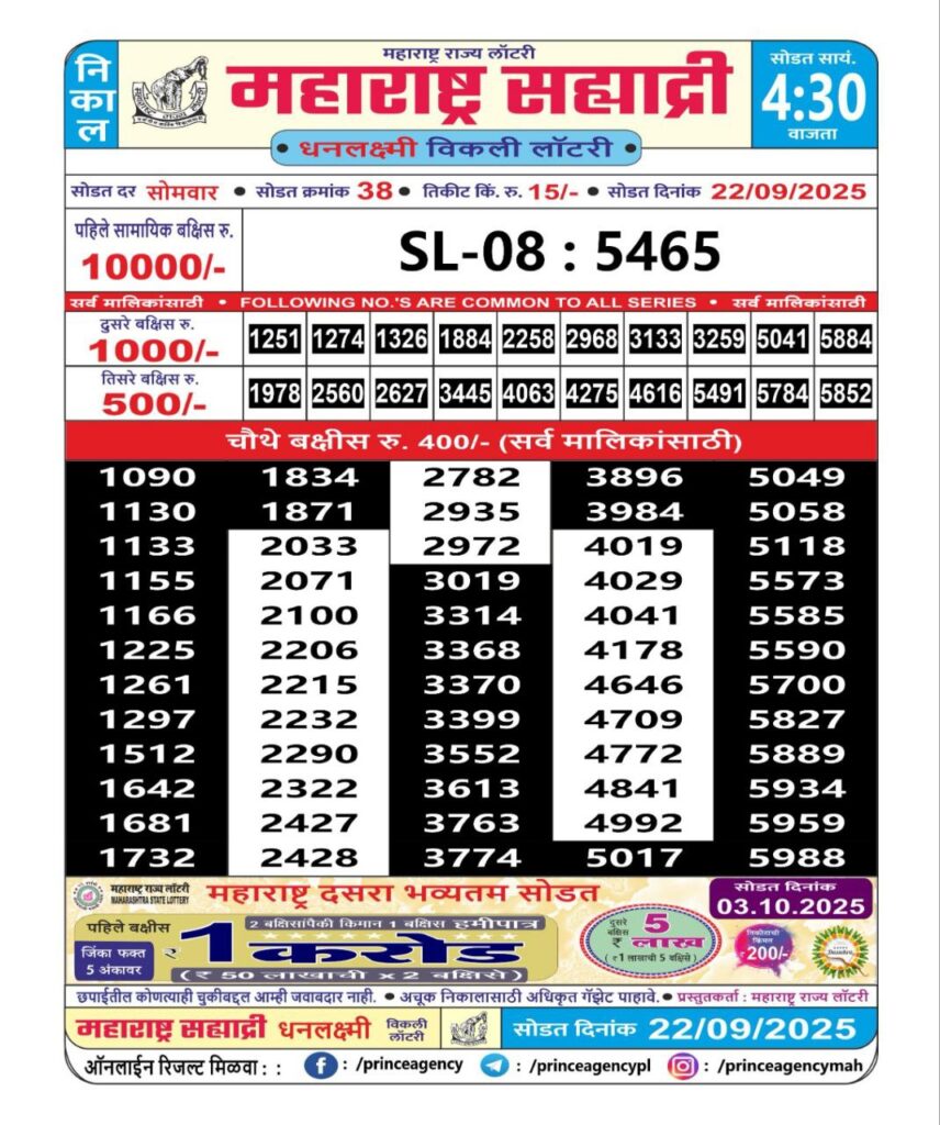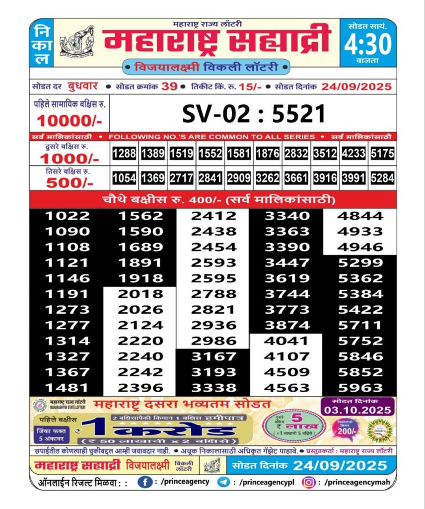 Article Focus | Maharashtra Sahyadri Weekly Lottery Results 2025 |