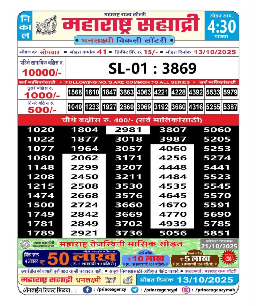 OVERVIEW – Maharashtra Sahyadri Weekly Lottery Results 2025