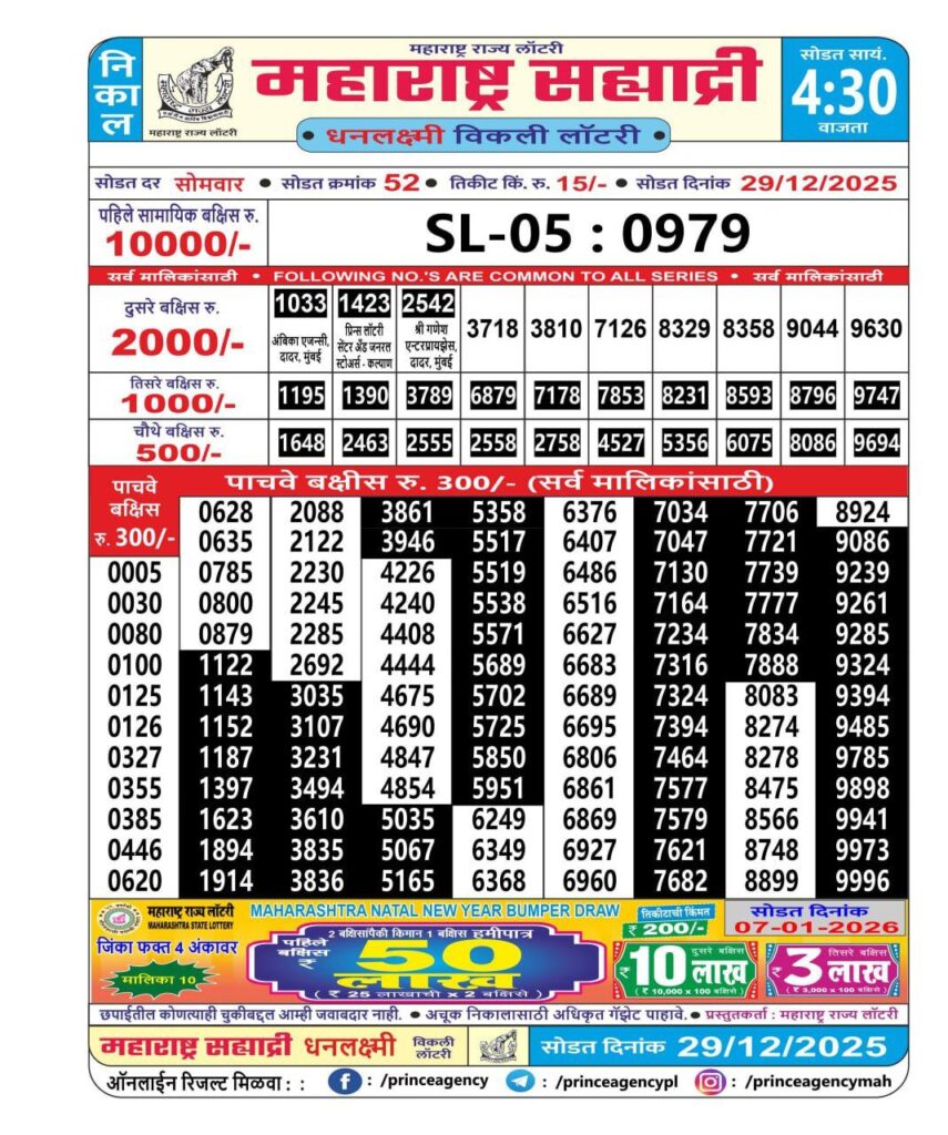 महाराष्ट्र सह्याद्री साप्ताहिक ड्रा Results 2025 – दररोज Maharashtra Lottery Today