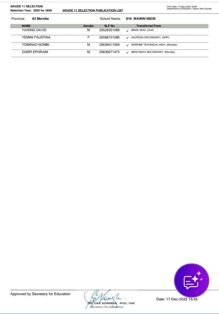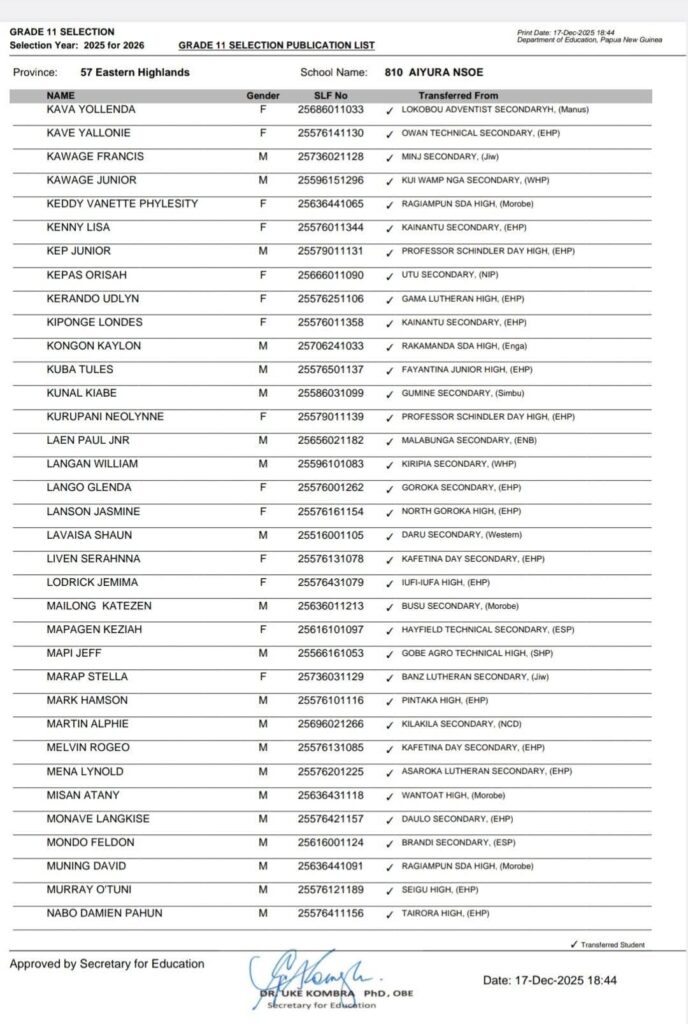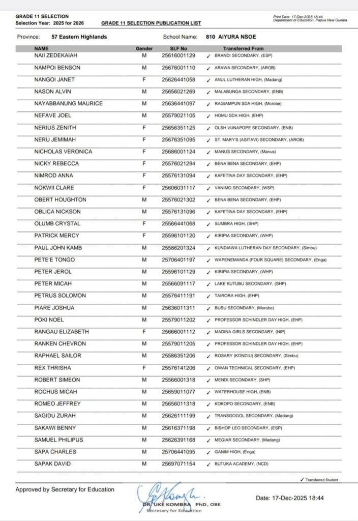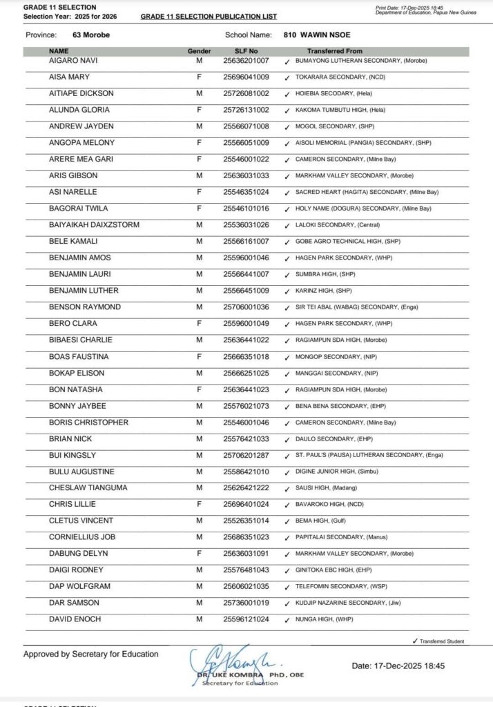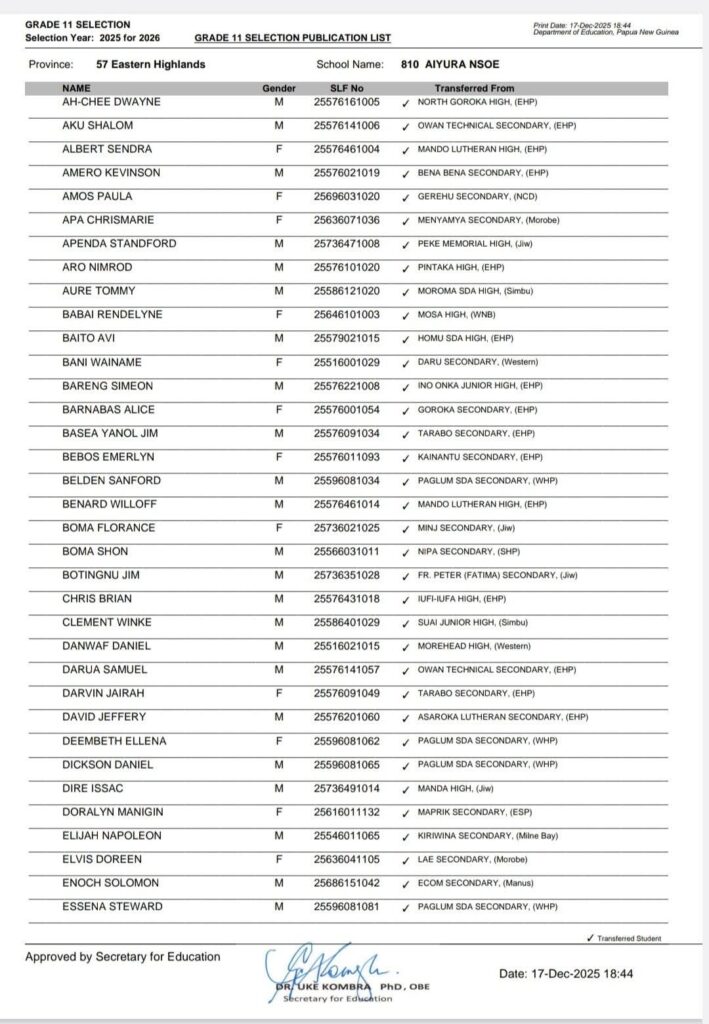 20 thoughts on “{PDF-OUT}PNG Grade 11 Selection List 2025 For 2026 Southern /Highlands /New Guinea Islands/ Momase Regions www.education.gov.pg