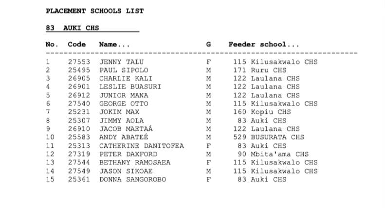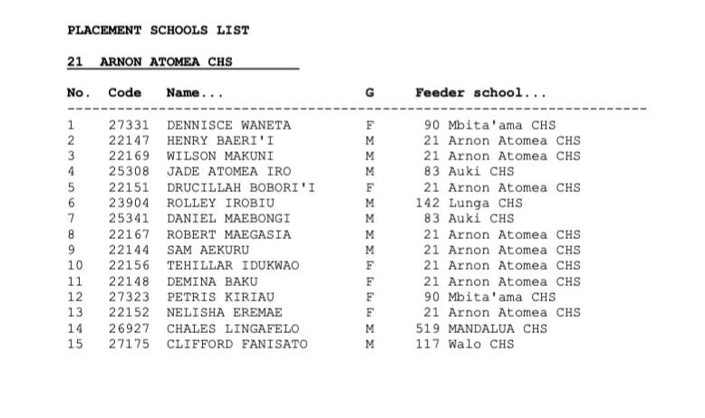Form 4 Placement Schools List 2026 (MAKIRA)